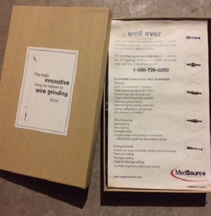 The premise of my marketing theme was to create intrigue: "Open your mind" to new guidewire design opportunities, using the new core wire shapes we could offer. The customer was presented with a closed box with a carefully crafted tease question encouraging them to open the box.
