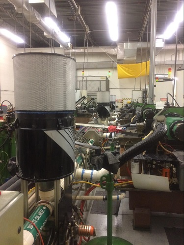 A centralized oil mist collection system was also required to keep the air in the room clear. When collecting oil mist, it's important to have large ducting to promote good air flow for suction (same anology as sucking air through a small or large straw).
