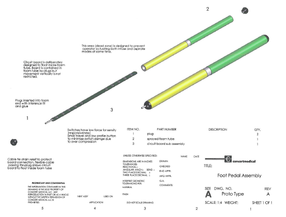 I served as product designer on this foot pedal project with assistance from a machinist and electrical technician.