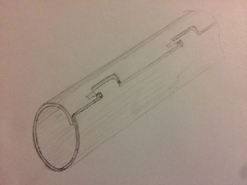 This concept iterated quickly again with cable exiting through one end cap on one end.