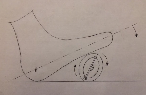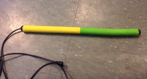 This prototype was mocked up just to see how having the wire wound in center for storage would work. Pedal diameter had to be big to make it effective. Large foam diameter was not ergonomically friendly for foot.