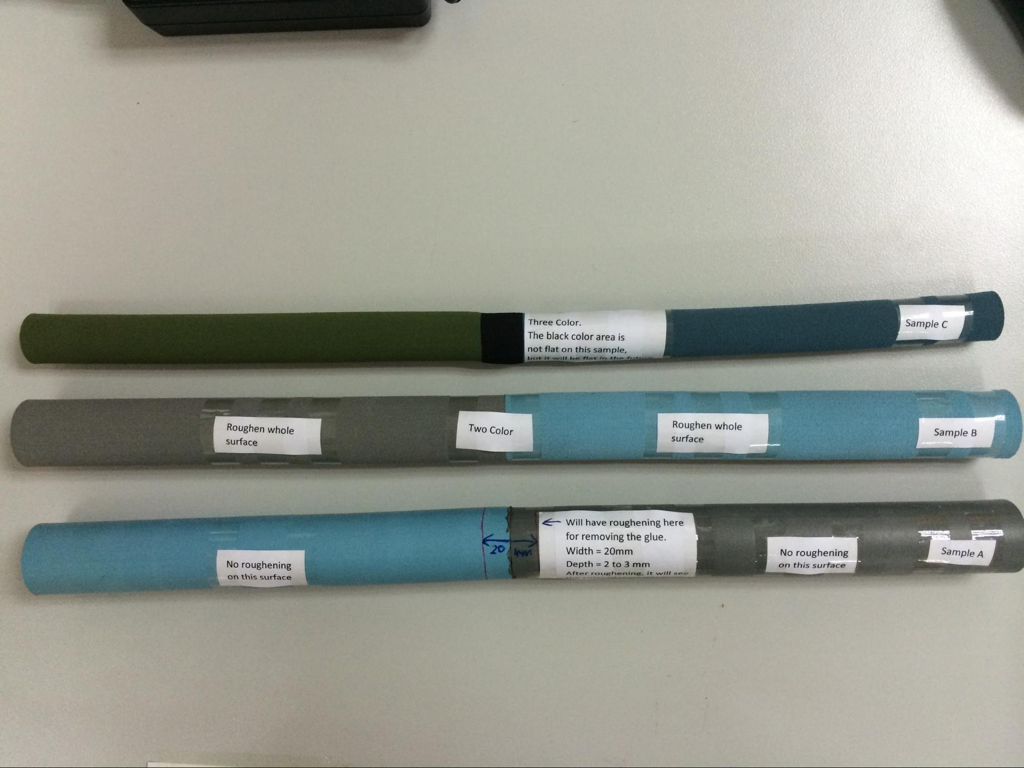 A mockup circuit board was made up with fibre glass (G10) and the switches hard-wired in parallel. Plastic plugs were machined on lathe and glued into the ends of the foam. The foam was sprayed painted with rubberized paint for flexibilty to simulate colored foam.