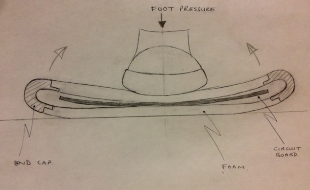 Compressed "ON" Switch works either way up. Foot compresses foam first then the foam forces click switch(es) to activate.