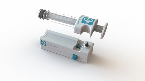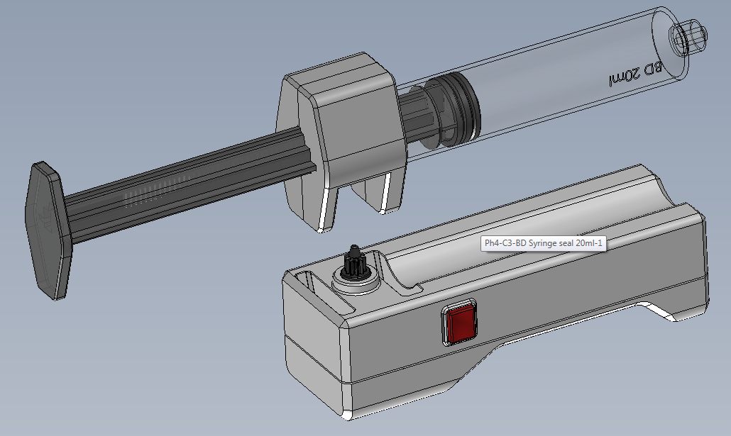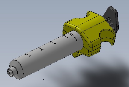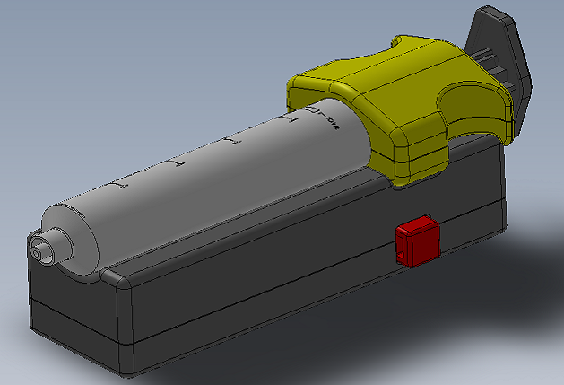 The design was further tweaked with better aesthetics and functional features, such as molded syringe handle for manual filling and use. Electronics would be utilized to control the plunger speed and torque which would limit fluid pressure.