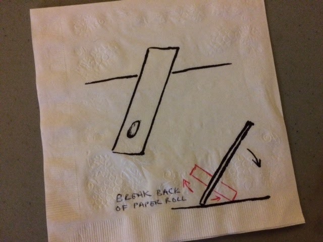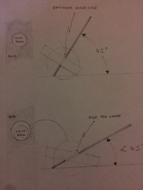 Whilst working on a house demolition project, I was using a pry bar for leverage and the "penny" dropped (pun intended). Maybe, I could use a simple breaker bar to break the roll of coins open by simply bending and stretching the paper to its tearing point. Using my favorite designer easel, the "napkin", I began sketching and doodling and created some good napkin art.