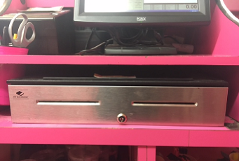 It can be stored on the counter near the register, or above the cash drawer for fast access to it.